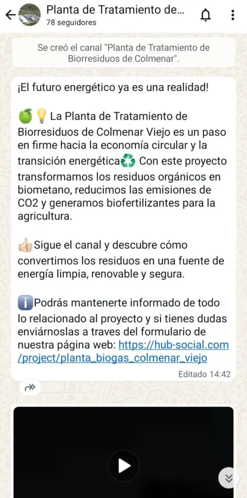 Con el compromiso de reforzar la transparencia y mejorar la comunicación directa con la ciudadanía, PreZero y Enagás Renovable han puesto en marcha un nuevo canal de difusión vía WhatsApp. Esta herramienta nace con el objetivo de mantener informados a los vecinos y vecinas de Colmenar Viejo sobre los avances, características técnicas y novedades de la Planta de Tratamiento de Biorresiduos.