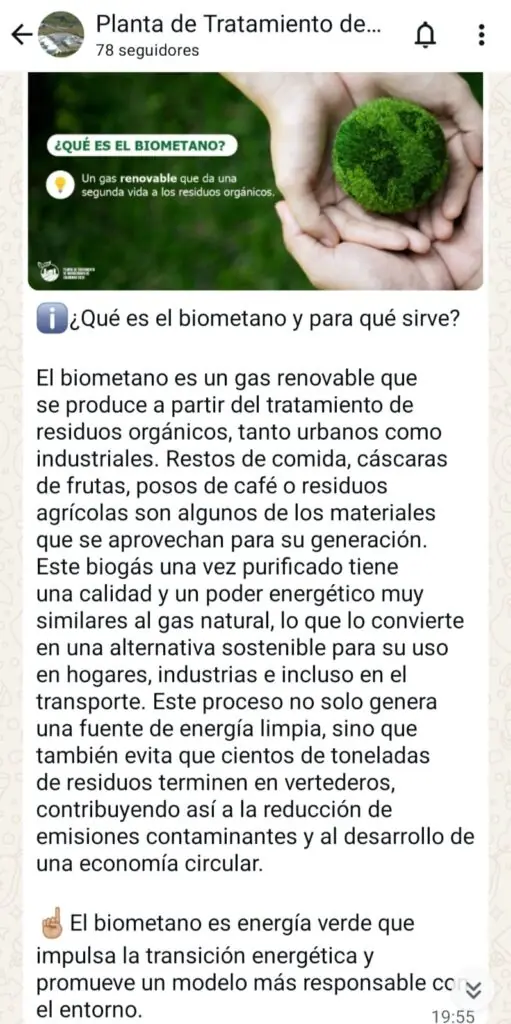 El nuevo canal de WhatsApp permite a cualquier persona recibir información verificada, ágil y accesible sobre el funcionamiento de la planta, su impacto ambiental positivo y el modelo de economía circular que impulsa. A su vez, se configura como una herramienta para estrechar la relación entre el proyecto y la ciudadanía, fomentando la participación desde las fases más tempranas y reforzando la confianza a través de una comunicación constante.